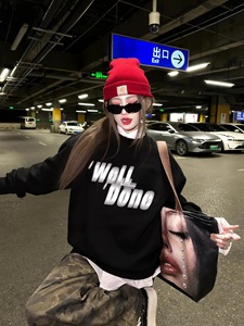 welldone幻影印花秋冬新款加绒高街宽松圆领套头卫衣男女情侣上衣
