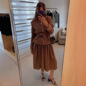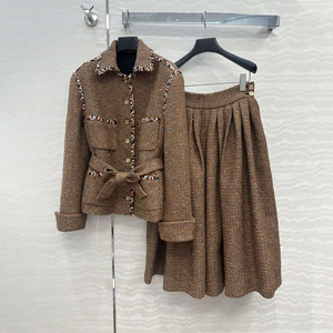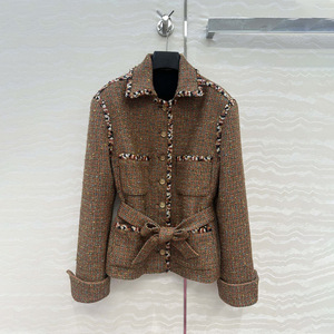 南油高端女装CH家复古格纹亮片装饰收腰系带小香风粗花呢外套秋冬