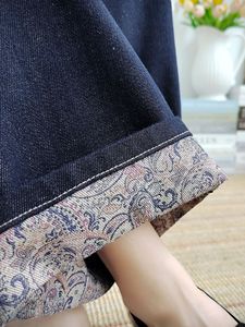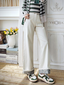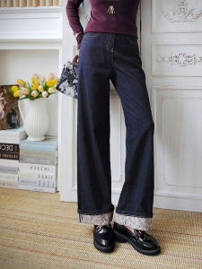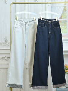 爆款腰果花印染牛仔裤高腰宽松阔腿裤直筒长裤女春秋休闲时尚新款