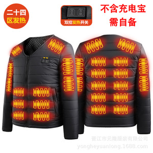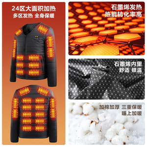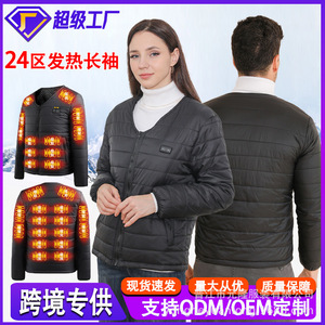 跨境智能发热棉衣双控24区恒温电加热长袖V领棉服保暖防寒发热服