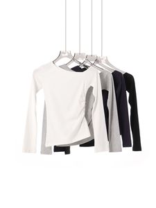 女款一字肩掐腰修身长袖T恤早秋个性辣妹风斜肩内搭打底落肩上衣