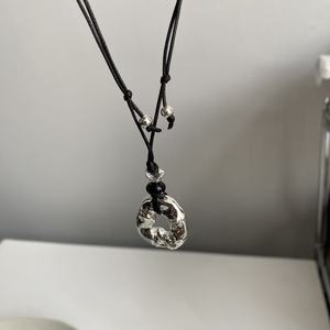 黑色绳黑珠+褶皱圈厚银吊坠