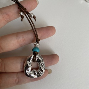 棕色绳绿珠+褶皱圈厚银吊坠