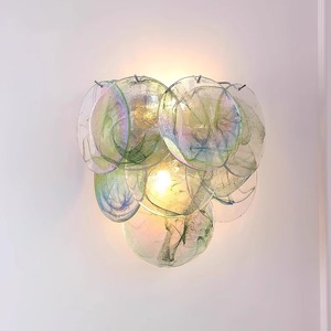 法式轻奢复古穆拉诺卧室床头灯壁灯中古手工绿七彩玻璃背景墙灯