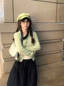 蜜瓜绿针织开衫女初秋穿搭2025新款上衣长袖韩系chic毛衣短款外套
