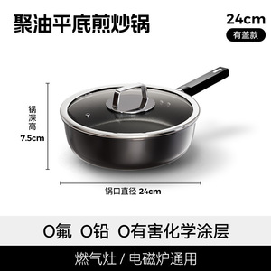 钛无涂层平底锅不粘锅家用牛排电磁炉煤气灶专用炒菜锅不沾深煎锅