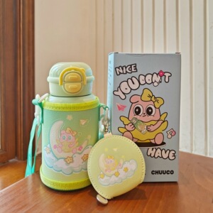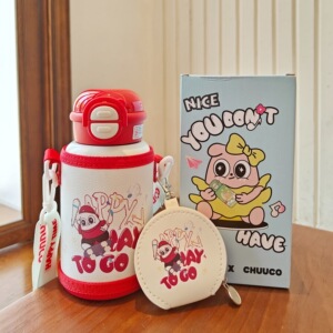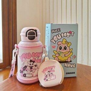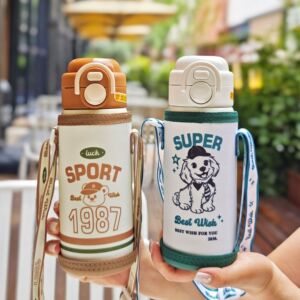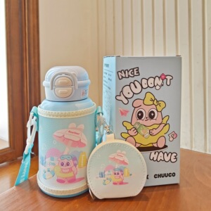 新卡通儿童保温杯背带便携吸管杯学生专用真空杯子不锈钢水杯批发