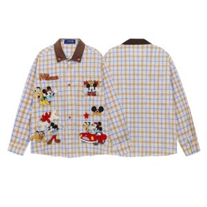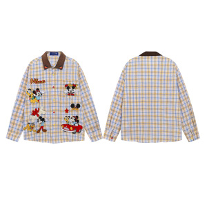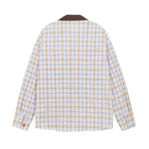 美式复古宽松刺绣撞色长袖衬衫男女情侣2025秋季新款百搭格子衬衣