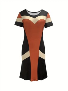2025新款跨境欧美时尚气质优雅撞色包臀修身女装连衣裙