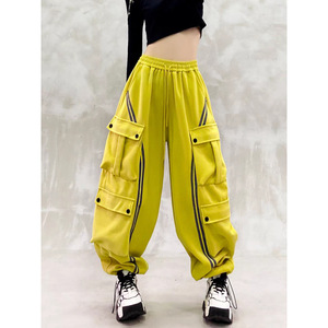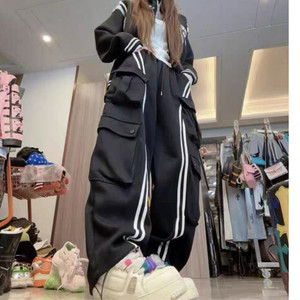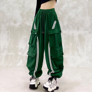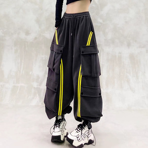 帅气条纹拼色工装休闲裤女秋新款高腰宽松显瘦百搭直筒束脚卫裤潮