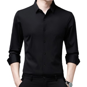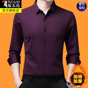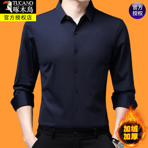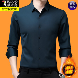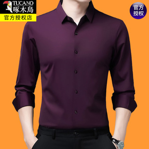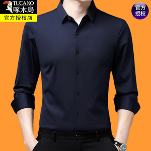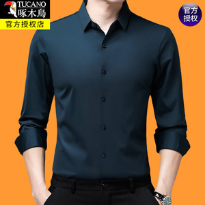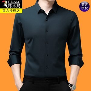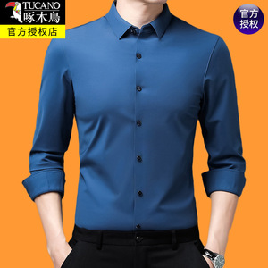啄木鸟无痕长袖衬衫春秋季男士商务休闲棉料上衣免烫抗皱弹力衬衣