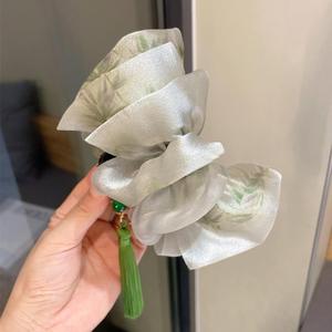 国风泡泡流苏抓夹缎面新中式发夹后脑勺盘发鲨鱼夹显发量旅行发卡