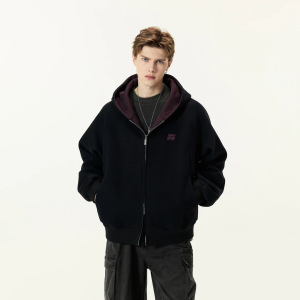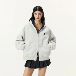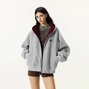 微短款撞色小众个性双拉链开衫卫衣时尚百搭男女情侣连帽休闲外套