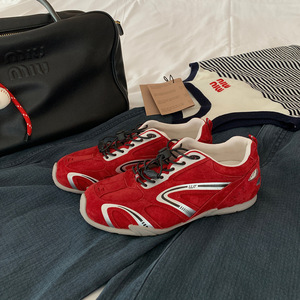 牛皮版~葡萄妈内增高4cm机能风系带赛车鞋休闲百搭德训阿甘鞋女