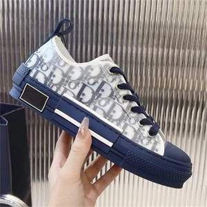 欧洲站D字母男鞋2025透气帆布鞋小白鞋厚底印花休闲舒适运动板鞋