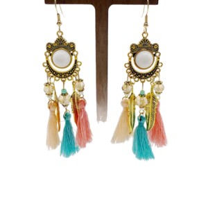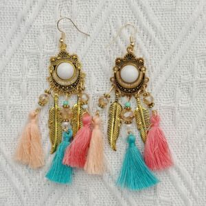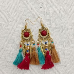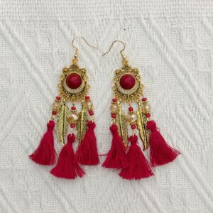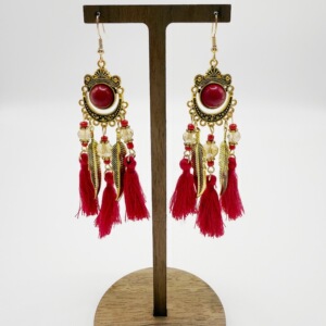 复古长款流苏耳钩古风波西米亚小众酒红色耳环潮耳饰高颜值女