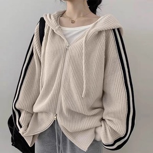 韩国秋冬简约气质抽绳连帽设计小众宽松小个子长袖毛衣外套