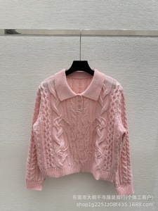 25早秋新款南油高定CE凯旋门法式复古纯色麻花扭花翻领针织衫毛衣