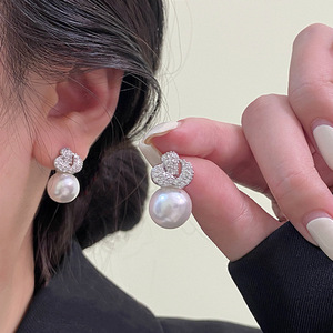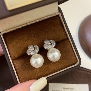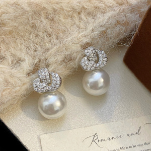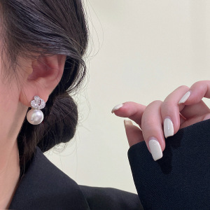 R1016玫瑰花珍珠耳钉