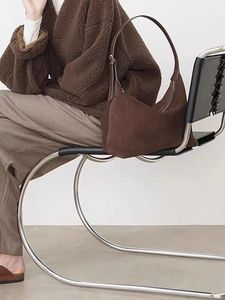 手提麂皮磨砂托特包包女式新款秋冬高级感复古单肩腋下饺子包