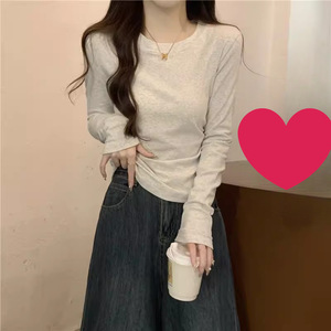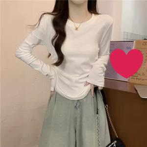 春秋冬薄款修身收腰t恤女长袖显瘦短款小个子圆领内搭打底衫上衣