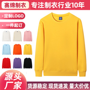 新款秋季华棉圆领卫衣男女休闲长袖宽松上衣团建活动定制LOGO刺绣