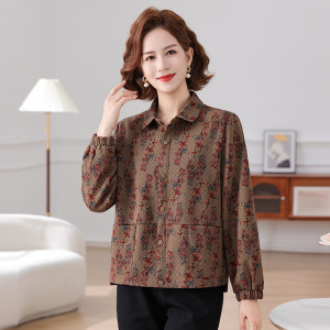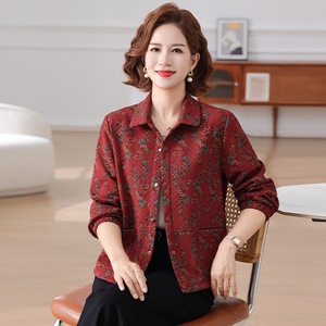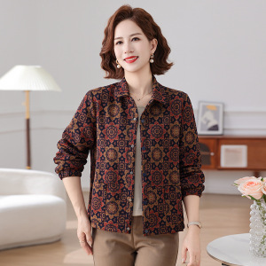 2025年春秋装女时尚洋气阔太太碎花外套妈妈秋装长袖翻领上衣外套