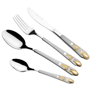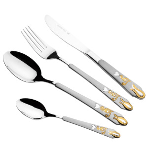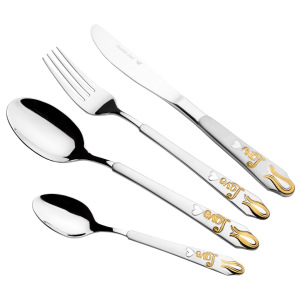 金色不锈钢跨境餐具24件套爱心七夕花纹牛排刀叉勺套装现货货源