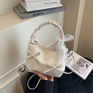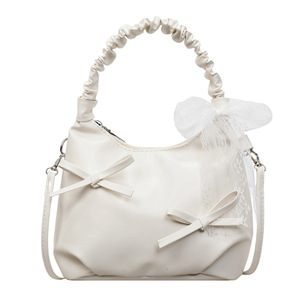 跨境女2025夏季新款蝴蝶结腋下包包女休闲通勤小众褶皱云朵包饺子