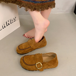 2025秋季新款真皮厚底勃肯鞋女百搭舒适平底休闲运动板鞋透气单鞋