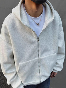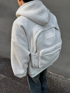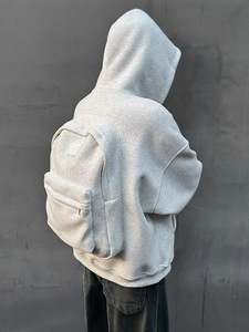 美式潮牌立体书包卫衣男款春秋季设计感宽松纯色连帽开衫上衣外套