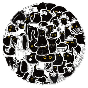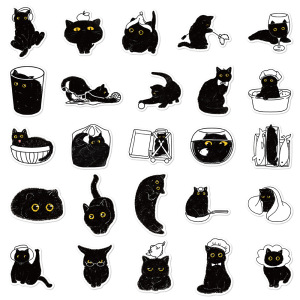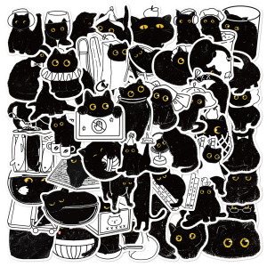 50张新款卡通黑猫日志贴纸包卡纸包装diy手机壳手账装饰防水贴画