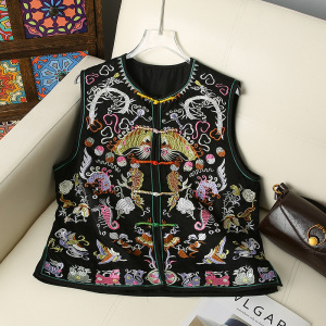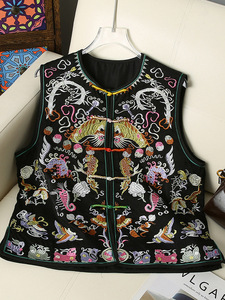 秋装国风唐装马甲女重工刺绣新中式复古盘扣马夹气质百搭黑色开衫