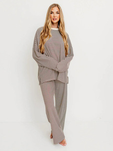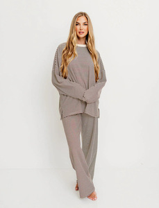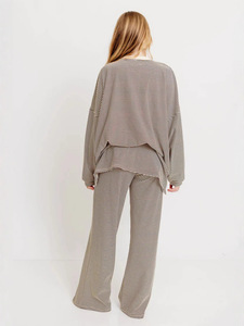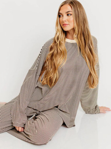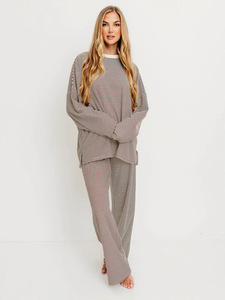 跨境欧美2025秋季新款女装亚马逊时尚条纹休闲居家服睡衣套装