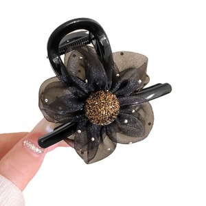 高级感网纱水钻花朵抓夹女2025新款鲨鱼夹高马尾发夹后脑勺夹发饰