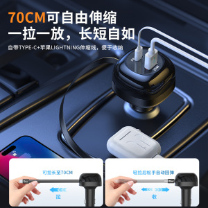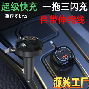 通用快充汽车点烟器转换头自带伸缩线车充闪充汽车车载手机充电器
