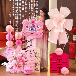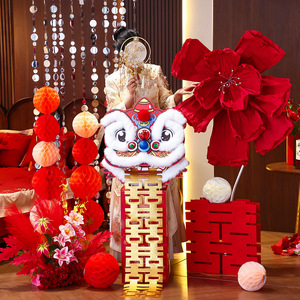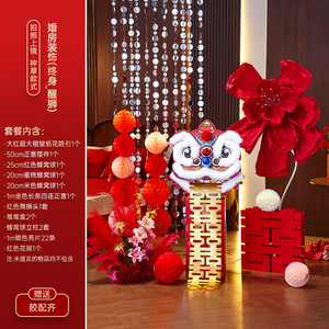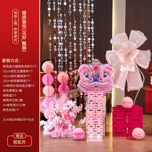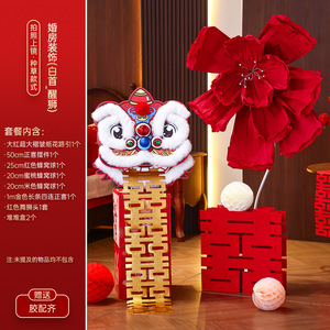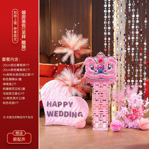 婚房布置套装醒狮摆件结婚礼女方客厅卧室晨袍拍照道具背景墙装饰