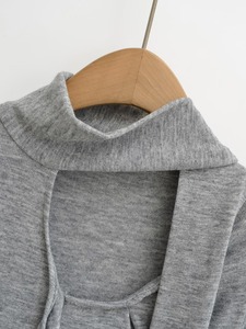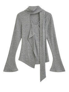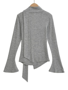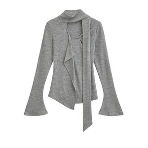 2025秋季新款肌理毛织打底上衣不对称荷叶边飘带镂空上衣批发女