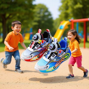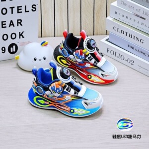 男童运动鞋LED跑马灯2025秋季卡通儿童旋转扣轻底舒适网面跑鞋