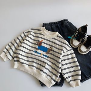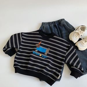 麦宝男童卫衣2025冬装新款儿童卡通条纹套头打底衫宝宝加绒内搭潮