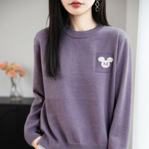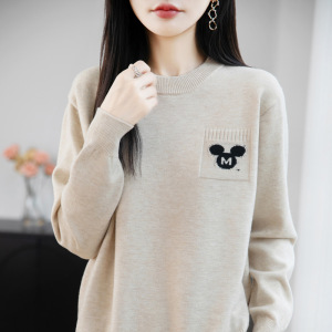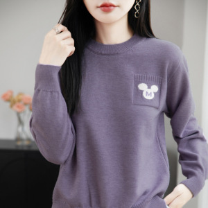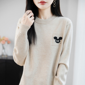 秋冬新款纯棉小熊图案半高领显瘦毛衣加厚保暖宽松百搭内搭女装
