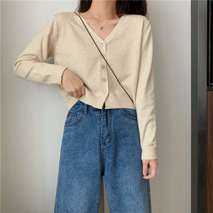 针织衫女韩版小个子纯色外套短款开衫V领内搭长袖毛衣小简约学生