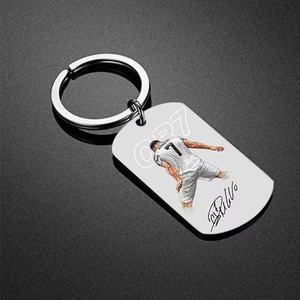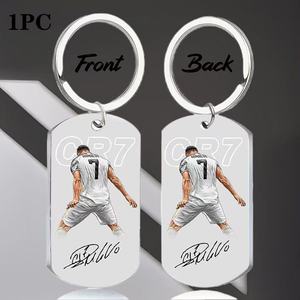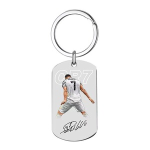 跨境热销款体育竞技足球明星C罗R7不锈钢彩印军牌钥匙扣定 制挂件
