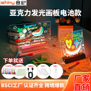 跨境新品电池款发光画板防刮花亚克力留言板透明备忘录儿童绘画板
