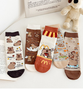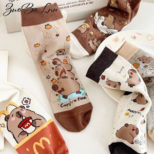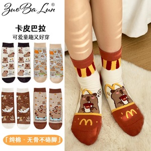 卡皮巴拉袜子女韩版卡通可爱直板中筒袜秋冬纯棉学院风长筒袜批发