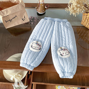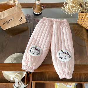 【现货】女童加绒童裤2025秋冬贴布猫咪条格纹加绒保暖裤QK252190