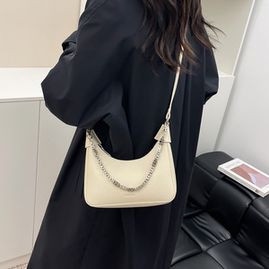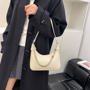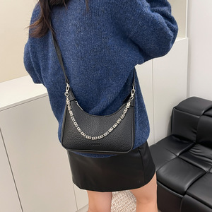 高级感小众链条腋下包包女2025新款时尚单肩斜挎荔枝纹软皮饺子包