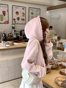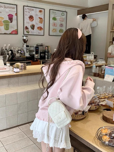 纯欲甜美风木耳边接拼拉链开衫外套女秋季设计感宽松长袖卫衣上衣