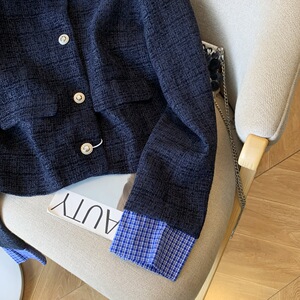小香风外套女春秋款2025新款爆款独特超好看韩系拼接假两件上衣