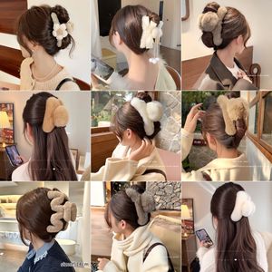简约复古后脑勺毛绒抓夹秋冬高级感毛毛鲨鱼夹发量多大号发夹女